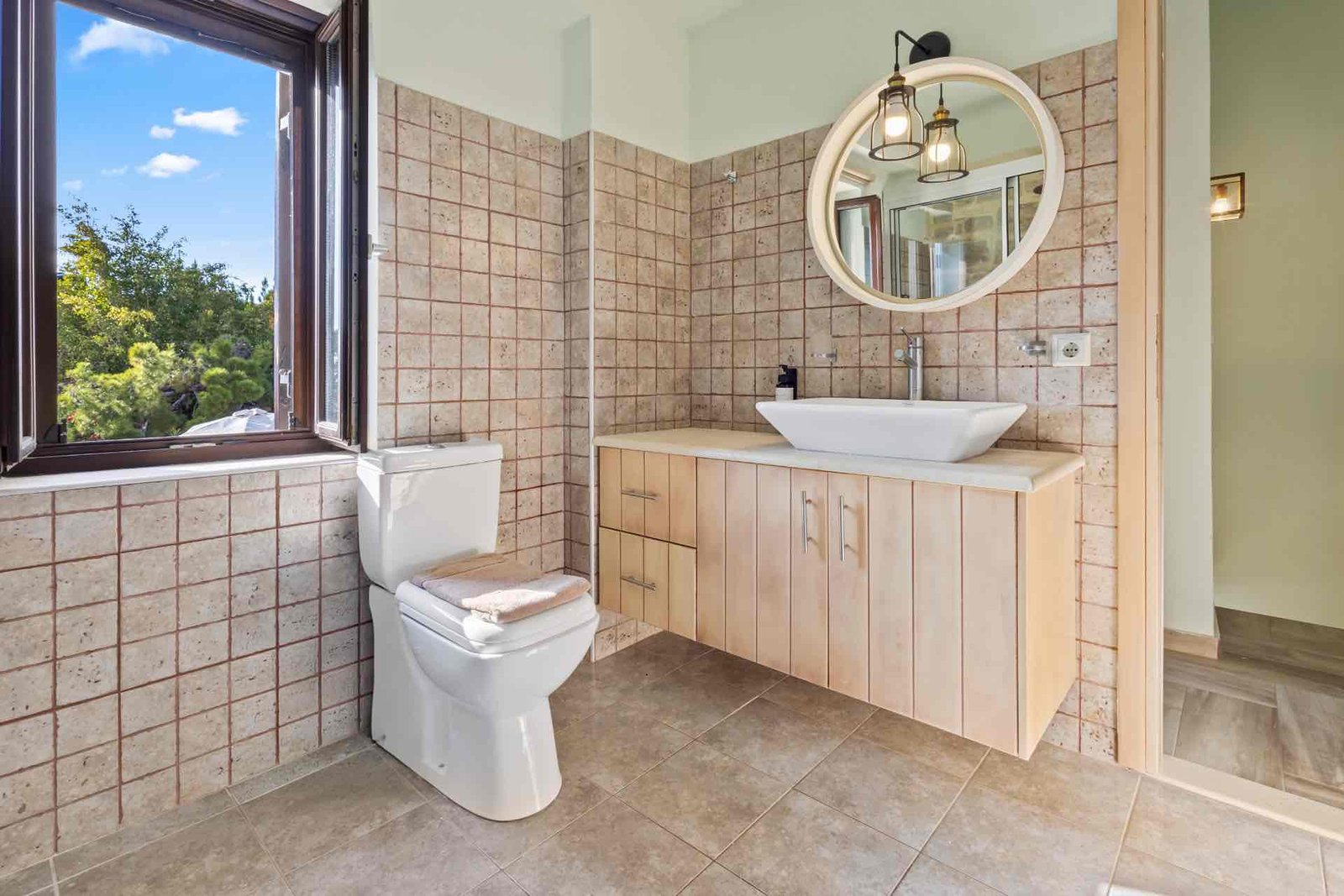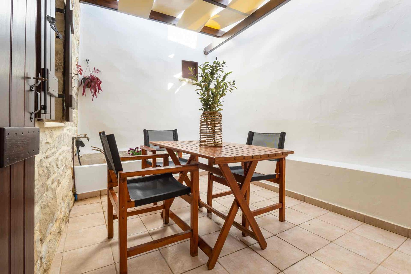 Die beiden Schlafzimmer befinden sich im Obergeschoss. Die außergewöhnlich hohen Holzbalkendecken und die dicken Steinmauern sorgen für eine kühle und entspannende Atmosphäre. Auf derselben Etage befindet sich ein modernes, geräumiges Badezimmer mit Dusche.