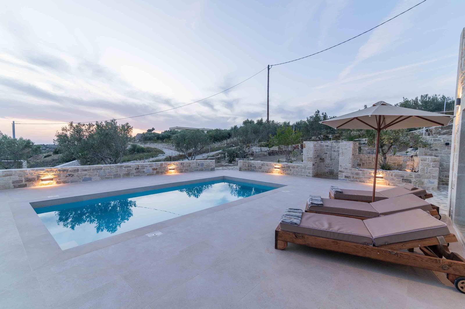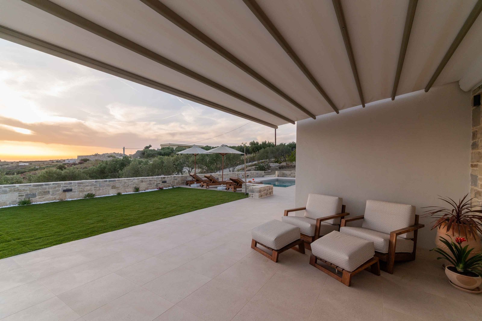 Erleben Sie eine einzigartige Villa, eingebettet in die grünen Olivenhaine, die sich sanft in jedem Detail des Hauses widerspiegeln. Das satte Olivgrün zieht sich durch das Interieur und verbindet die moderne Architektur harmonisch mit der mediterranen Natur. Große Glasfronten im Wohnbereich lassen die natürliche Umgebung in den Raum fließen, während das stilvolle Schlafzimmer direkten Zugang zur privaten Terrasse und dem luxuriösen Poolbereich bietet. Hier verschmelzen Komfort und Natur zu einem unvergleichlichen Erlebnis – ein Refugium für Gäste, die das Besondere und die Ruhe der Olivenhaine suchen.